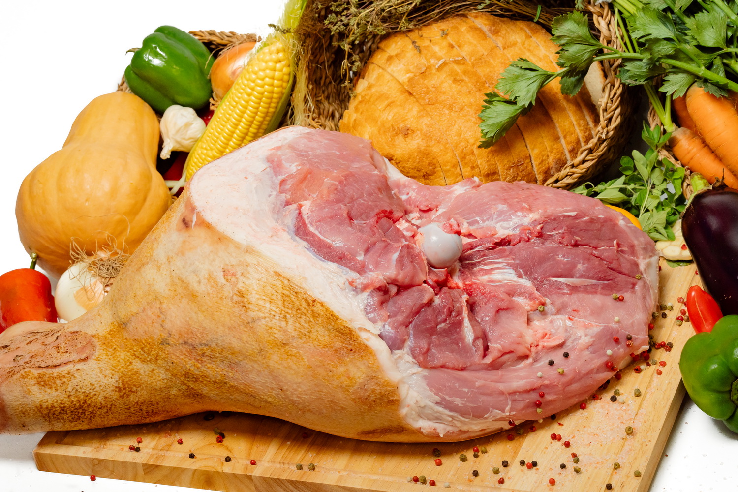 Pulpa de spate cu os si sorici parlit transata din porc romanesc, rasa de carne. Are o greutate de aproximativ 13 kg