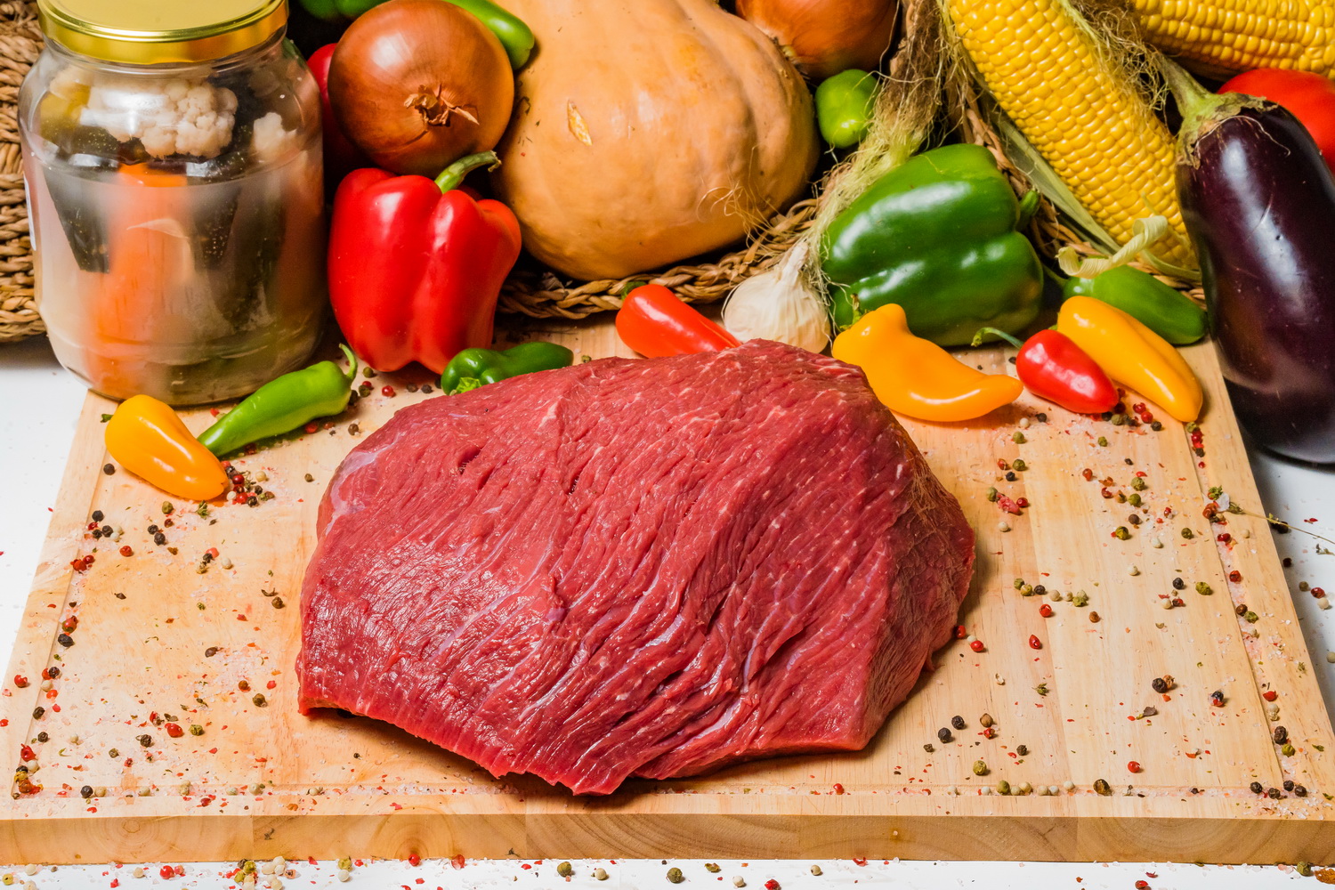 Pulpa posterioara de tineret bovin dezosata si bine degresata, la ‘rosu’. Pretul afisat este pentru 600 g.